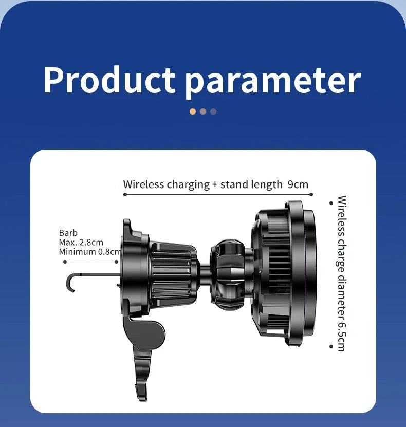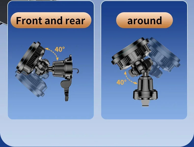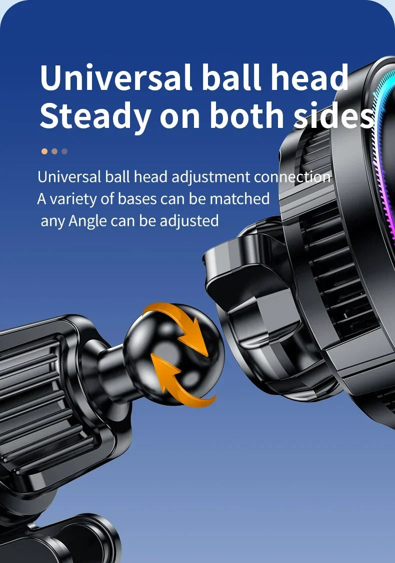 【Double Cooling, No Phone Damage】 This 2-way magsafe car fan mount is upgraded. The internal semiconductor cooling chip and cooling fan makes it be able to work as a magnetic wireless car charger and a phone cooler simultaneously. It will cool your phone while charging.No more worried your phone will get overheating while charging.