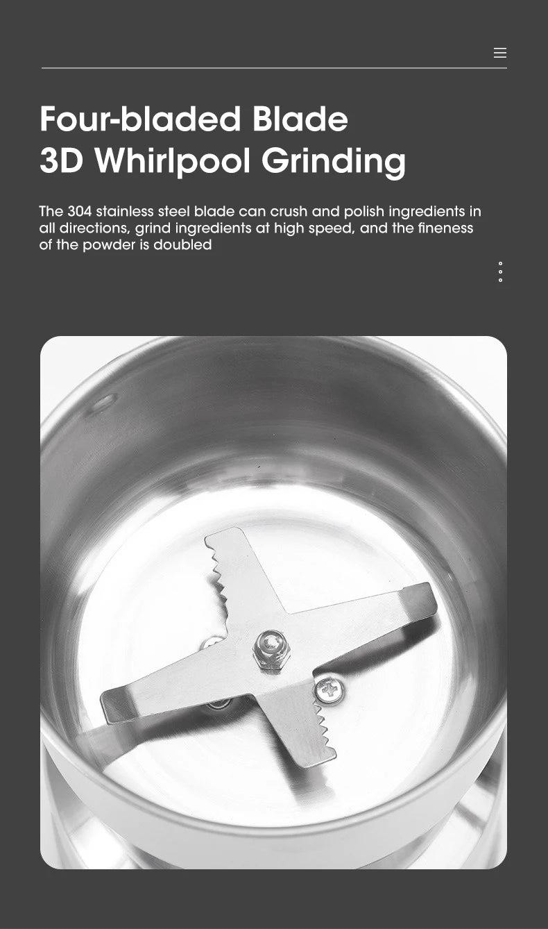 Mini Electric Grinder 300ml – 4-Blade Spice, Coffee & Grain Mill for Home Use