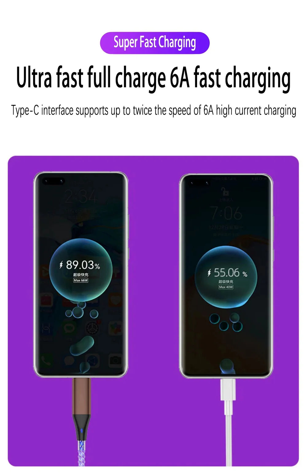 RGB LED USB-C Cable 66W – Super Fast Charging for iPhone & Android Devices