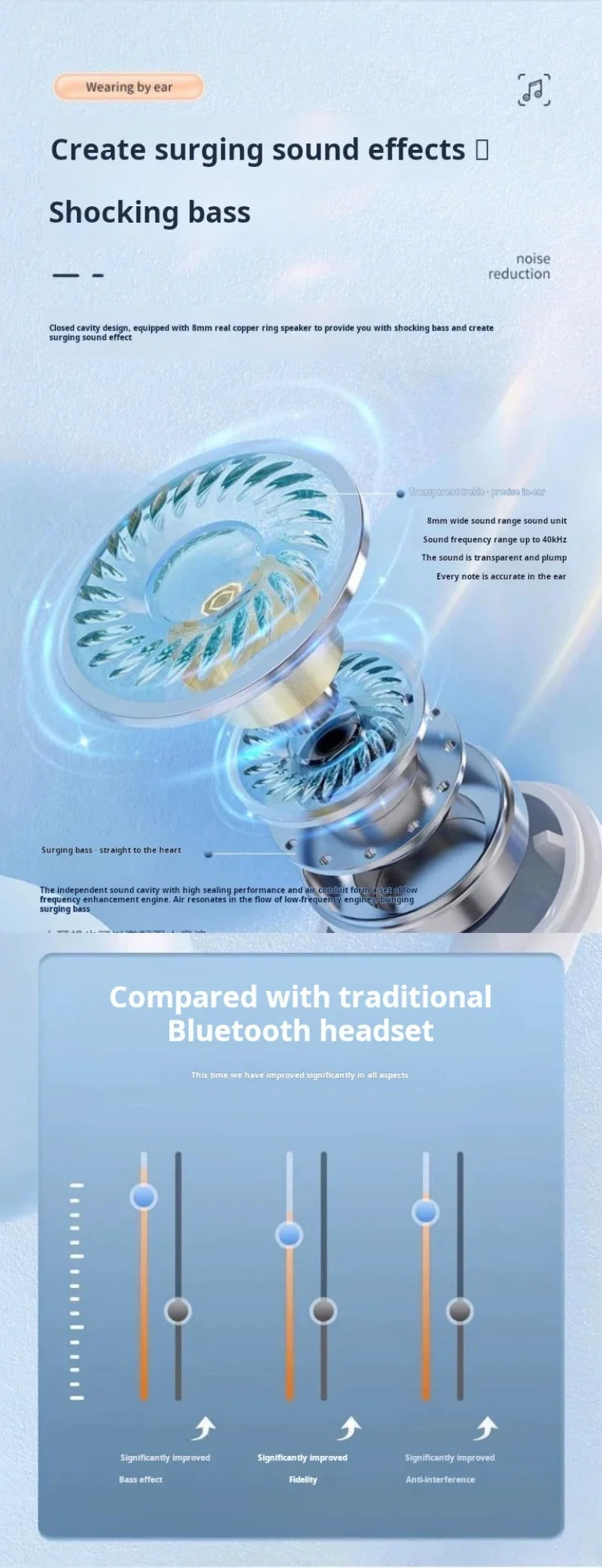 Closed cavity design, equipped with 8mm real copper ring speaker to provide you with shocking bass and create surging sound effect