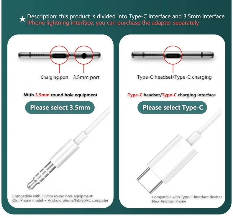 Type-C & 3.5mm Interface Options:Comes with both Type-C and 3.5mm interfaces, compatible with a wide range of devices.